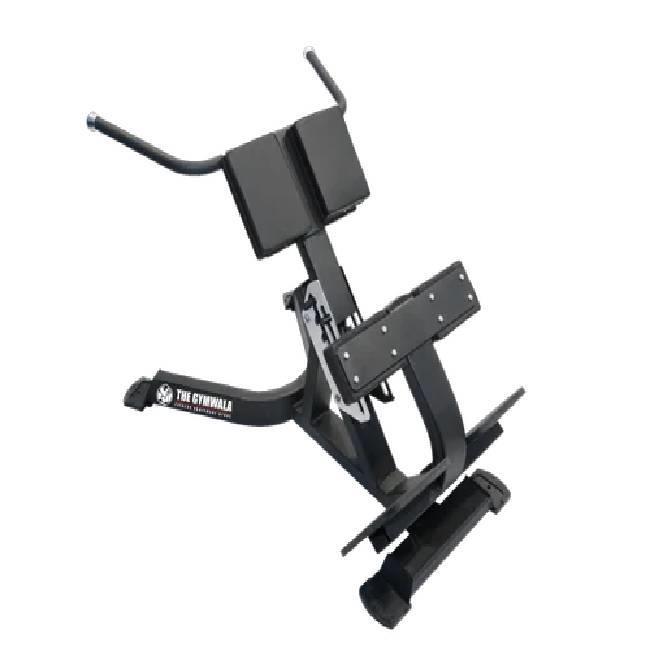 Black Roman chair hyper extension equipment for gym strength training. Stands 2 ft tall and weighs 30 Kg, designed for effective workouts.