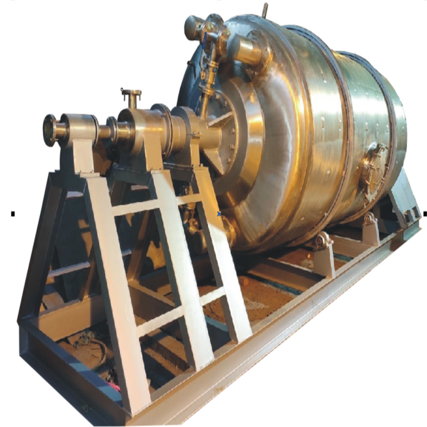 Horizontal Rotary Extractor Machine, 6 KL capacity. SS 304/SS 316 stainless steel construction. Motor speed 60-160 rpm. For herbal and solvent extraction plants.