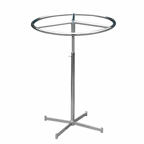 Foldable metal round garment rack with wheels. Supports up to 30 Kg weight capacity. Features a durable metal frame and a standard size for garment storage.