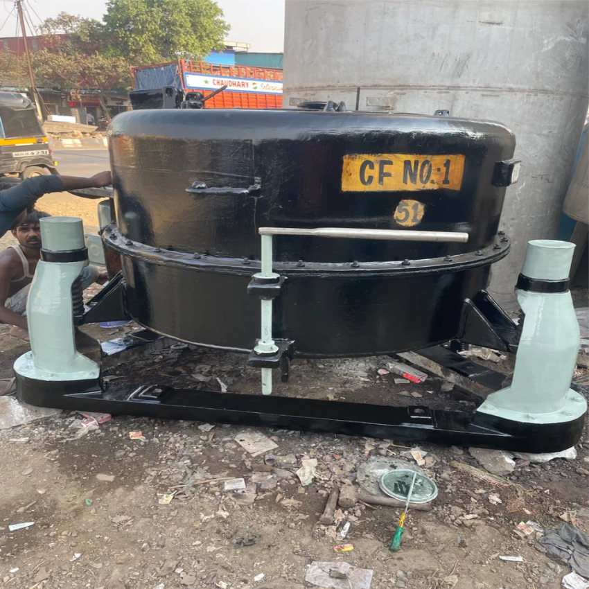 Non-portable, 48-inch diameter centrifuge with rubber lined ABS material. Available as second-hand only.
