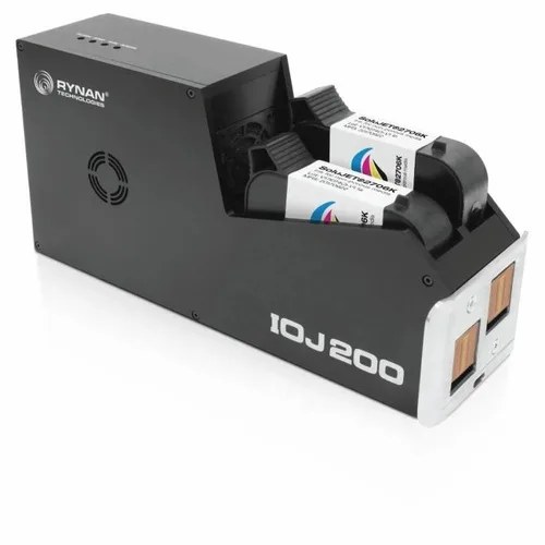 Online inkjet printer, model IOJ200. Features password protection security and 6mm throw distance. Offers 5-hour battery life and operates on 240V.