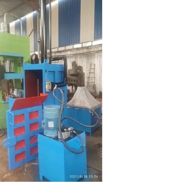 Semi-automatic cotton baling press with 30 TON capacity. Compresses paper, textile, cotton, and metal. 7.5 HP power consumption. Size 30" X 24".