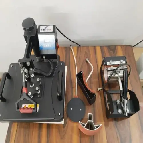 Single color, semi-automatic heat transfer garment printing machine. Operates at 300°C, 2Hp, 210V, single phase. Features 12x14 inch display.