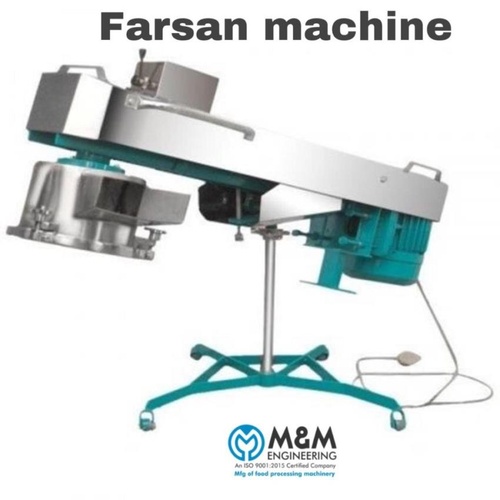 Semi-automatic SS 304 namkeen extruder, food grade. 0.5 HP, 220V. Produces 20-25 kg/hr of fafda, sev, gathiya. Compact design, 110 kg weight.