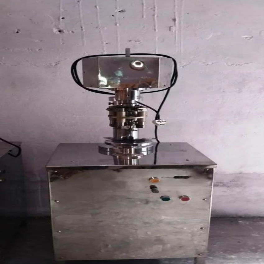 Semi-automatic electric machine for plastic cap sealing. Features a single head design and is available with custom cap diameter specifications. Weighs 70 kg.