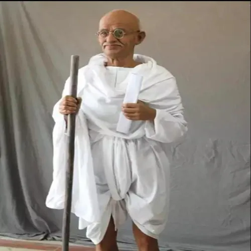 Handmade, unbreakable 5.7 ft silicone Gandhi statue in natural color. Features fine finishing, 5mm thickness, and 20kg weight. Indoor decor, 45-day delivery.