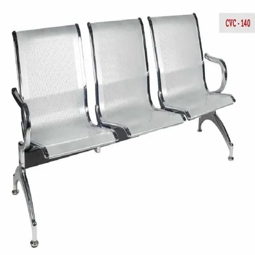Stainless steel 3 seater waiting chair, 3.8x1.5x2 ft (LxWxH). Polished silver finish. Ideal for office use. Minimum order quantity of 5 units.