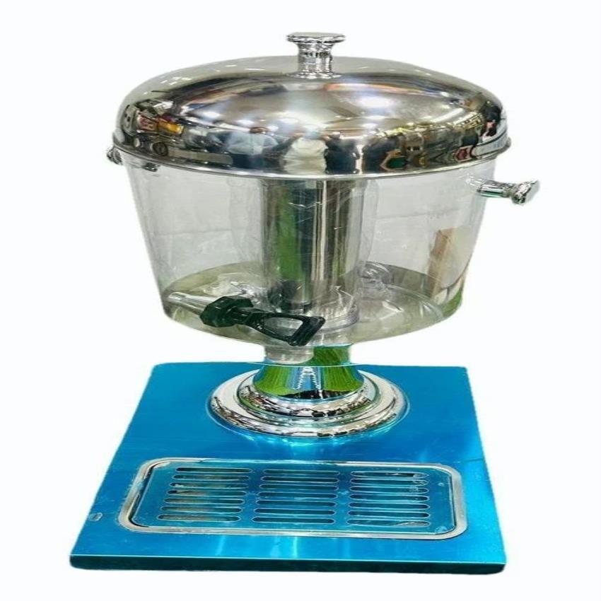 Silver manual top load water machine with 8L capacity. Constructed from SS material, it features a single tap and floor-mounted installation for home use.