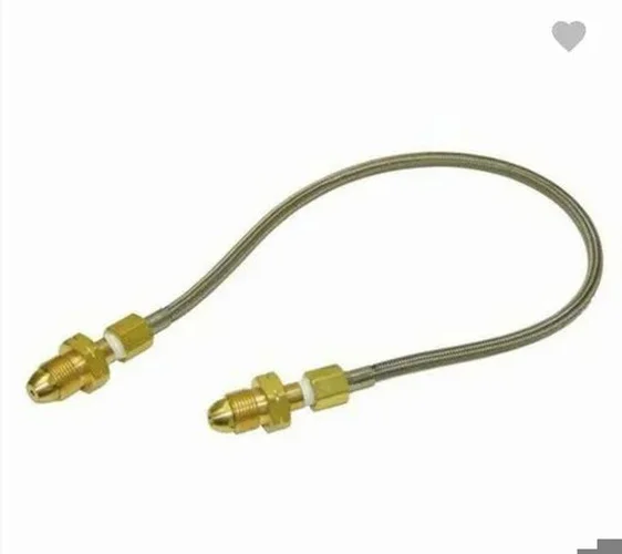Silver stainless steel oxygen flexible manifold tailpipe for cylinder connection. Available in sizes from 6mm to 25mm. Durable and reliable for oxygen delivery systems.