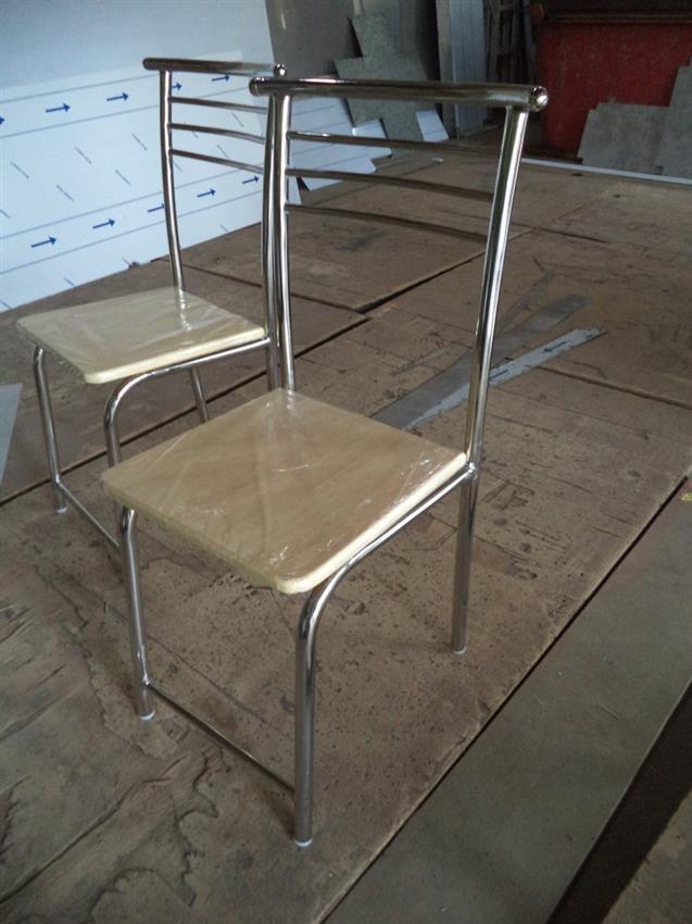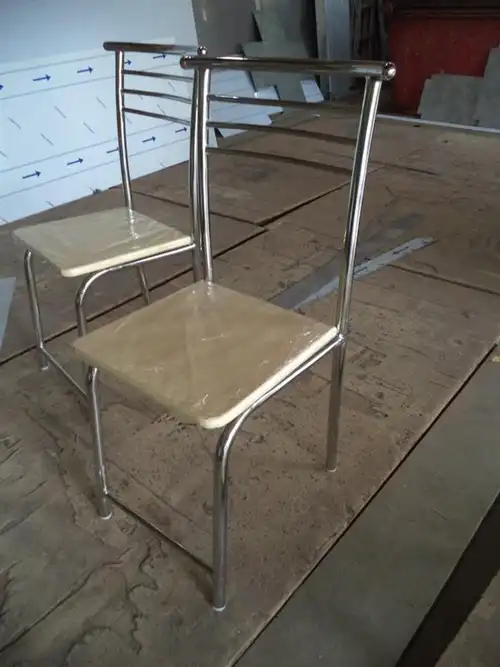 Durable silver stainless steel chair, non-foldable design, square shape, suitable for home use. Minimum order quantity of 5 units. Made in India.