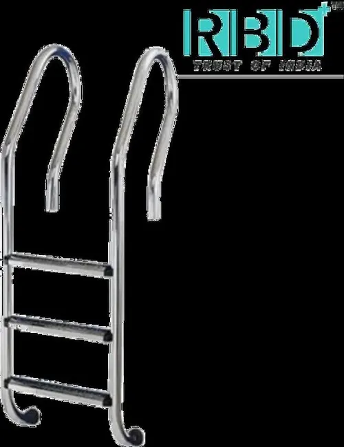 Silver steelness steel swimming pool ladder, 3-step model. Constructed for durability and safe access to your pool.
