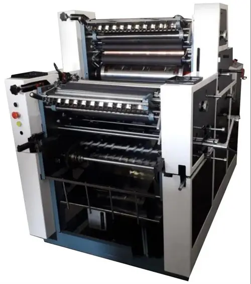 Semi-automatic single colour offset printing machine, sheet fed. Operates at 50Hz, 220V, with a maximum paper size of 18x25.4 inches. Achieves 8000 sheets/hour. Max printing dimensions: 10x25 inches.