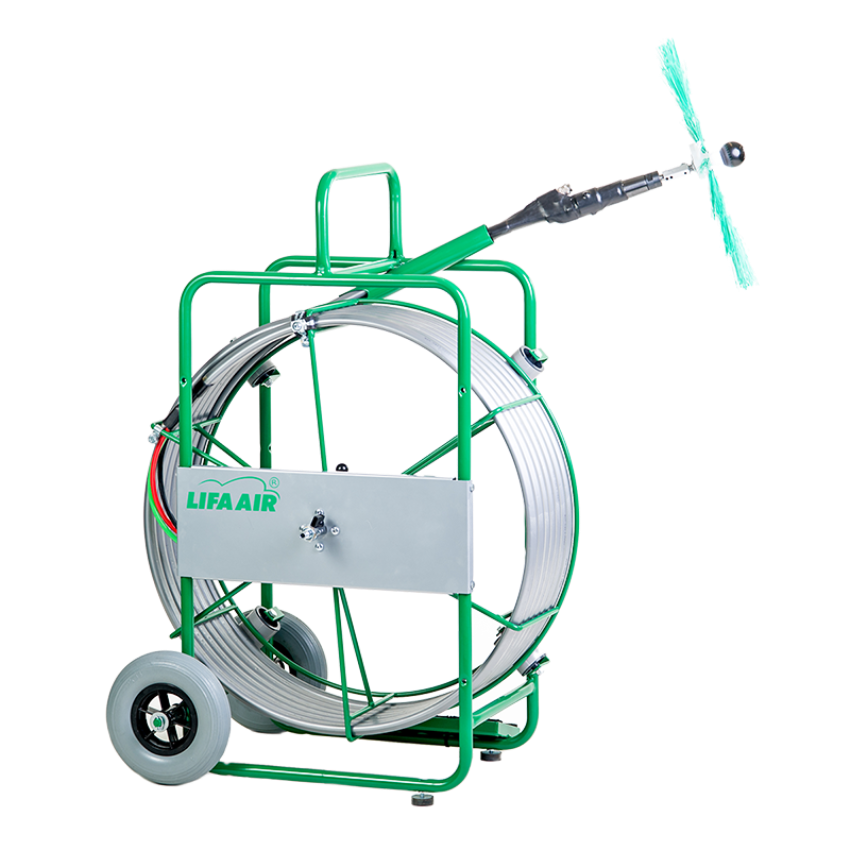 Single phase air duct cleaner with 220V voltage and M12 brush connection. Constructed from aluminium, it uses compressed air for driving power.