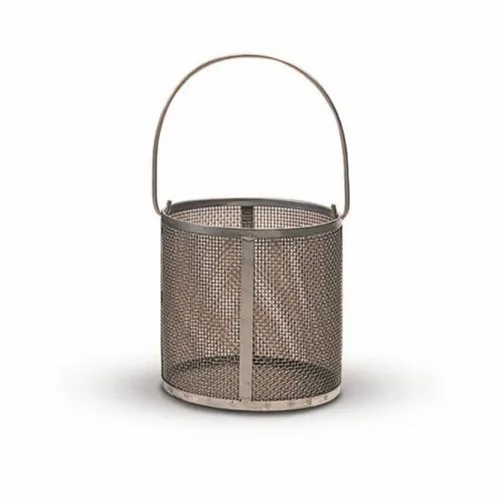 Cast iron density basket equipment (SMEW-0143) with 20 cm diameter and 30 cm height. Features 6.3mm wire mesh size. Made in India.