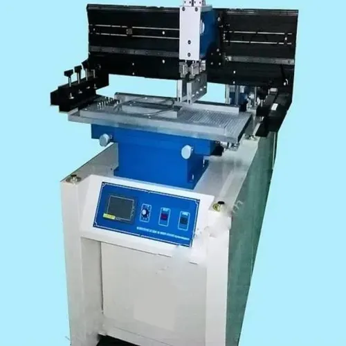 SMT stencil printing machine, model SISMTSPM. This grey colored equipment is engineered for precise stencil application in SMT manufacturing.