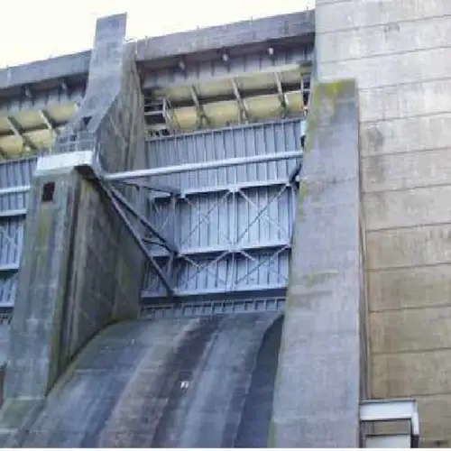 Spillway crest gate with sandblasted MS material, primer, and color finish. Offline service available Pan India. Custom material specifications.