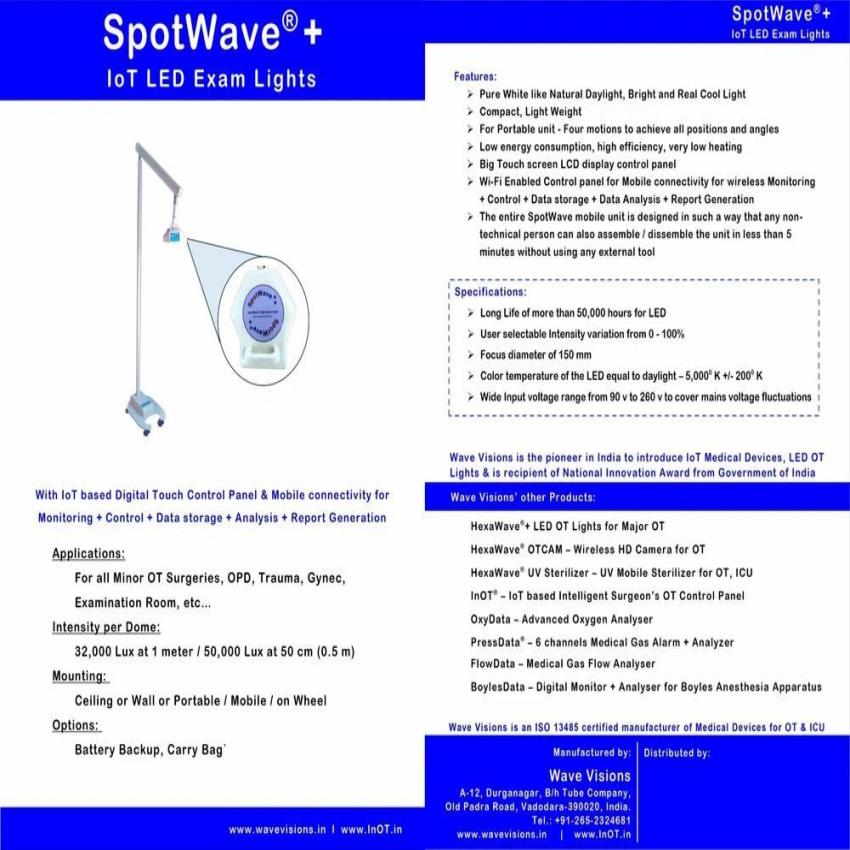 Mobile LED examination light for gynecology. Features 45,000 Lux brightness, single color, and angular, axial, radial movement. Ideal for clinical examinations.