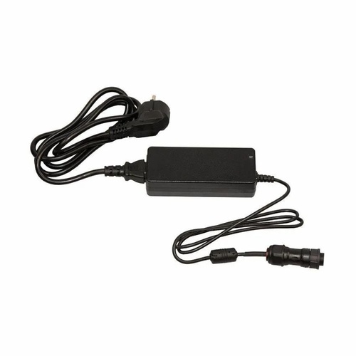 Agricultural sprayer pump battery charger. Features 5 Amp charge current and 24V output voltage. Durable black color, made in India. Ideal for agricultural applications.