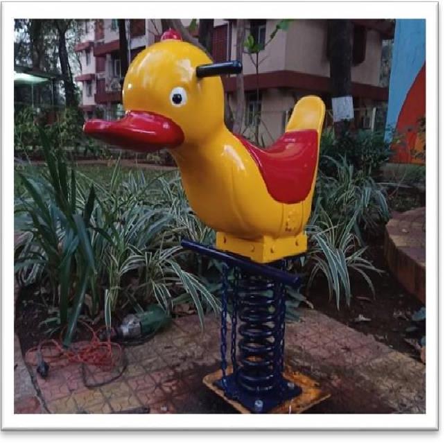 Spring duck play equipment designed for outdoor use. Requires a minimum area of 2ft W x 3ft L for safe operation and enjoyment.