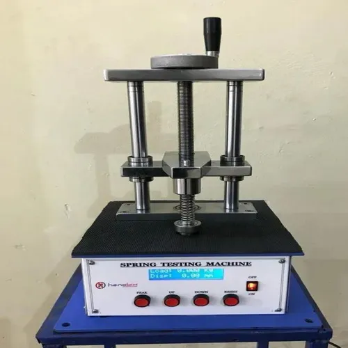 AC powered iron/steel spring testing machine with 0.001kg/mm accuracy, 1kg to 1 ton capacity. Features overload safety and digital display.