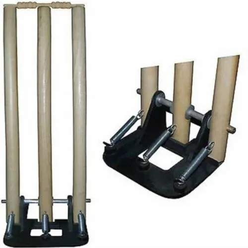 This spring wicket stand is designed for cricket training and practice. Its sturdy construction provides stability for wickets during drills. Suitable for outdoor use.