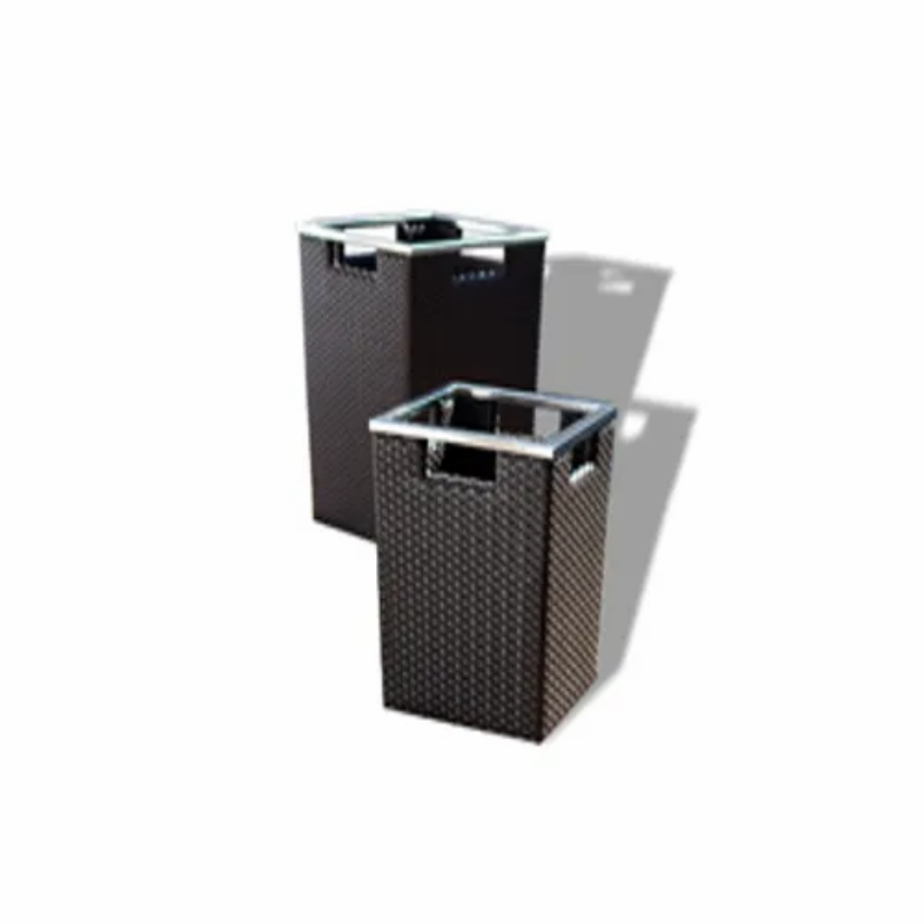 Set of two square wicker planters in brown for floor display and decoration. Constructed from durable wicker material, offering a natural aesthetic for any space.