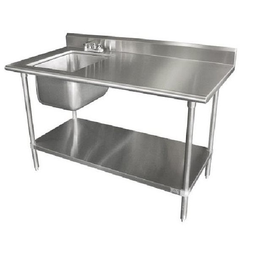 Rectangular sink combined with a table, constructed from SS-202 material. Offers a practical and integrated workstation.