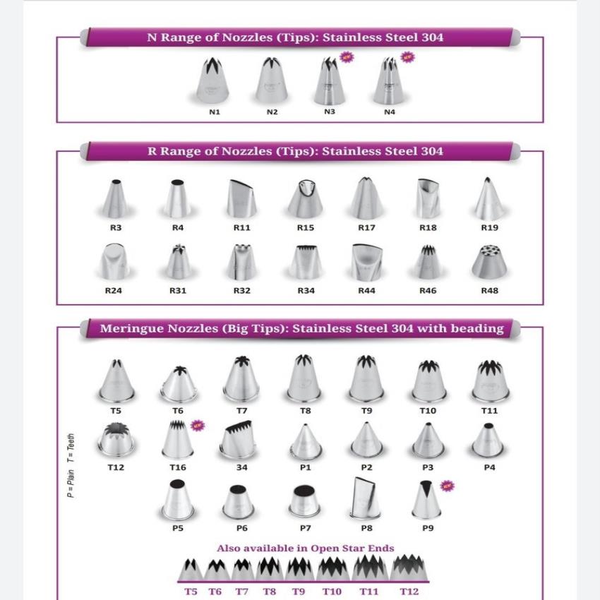 SS 304 stainless steel nozzles for cake decorating. Silver color, specifically designed for creating intricate cake designs. Made in India.