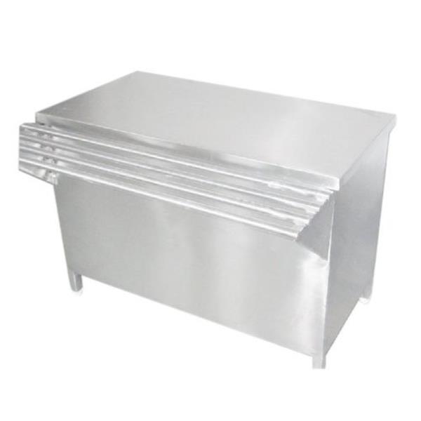 Stainless Steel SS canteen catering counter table, available in SS304 and 316 grades. Features a polished surface finish for hygienic catering applications.
