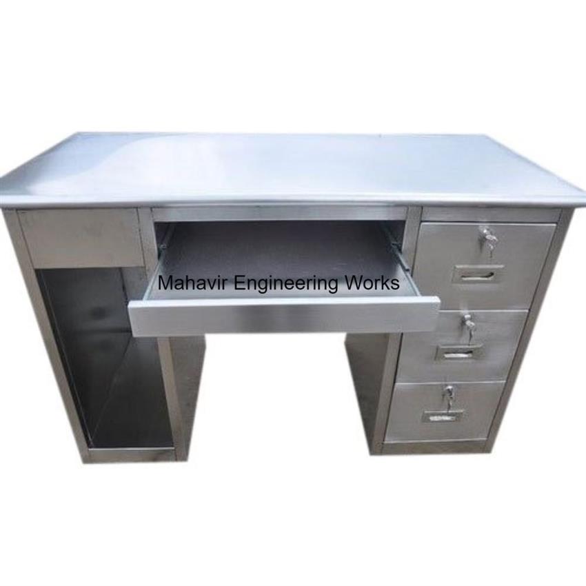 SS 304 computer table with a polished finish. Features a keyboard holder and integrated storage drawers for home use.