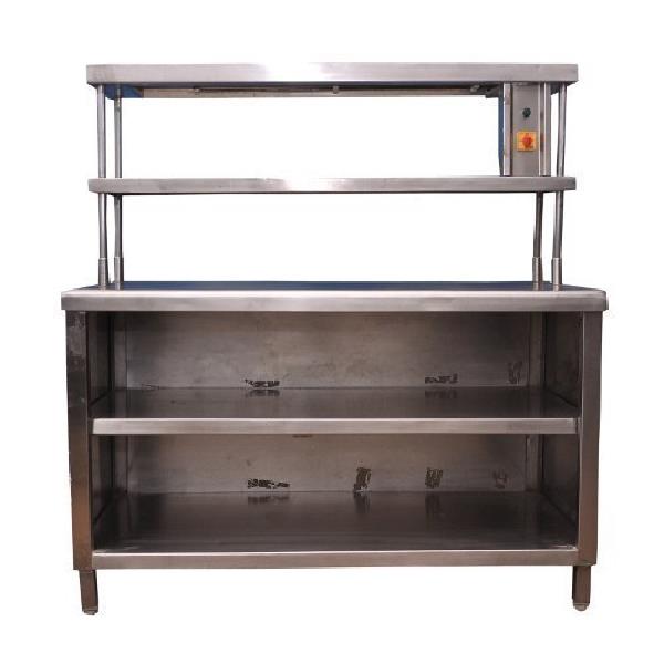 Polished SS food pickup counter for hotel use, maintaining temperatures between 0-10°C. Made from high-quality SS material for durability and hygiene. Ideal for chilled food service.