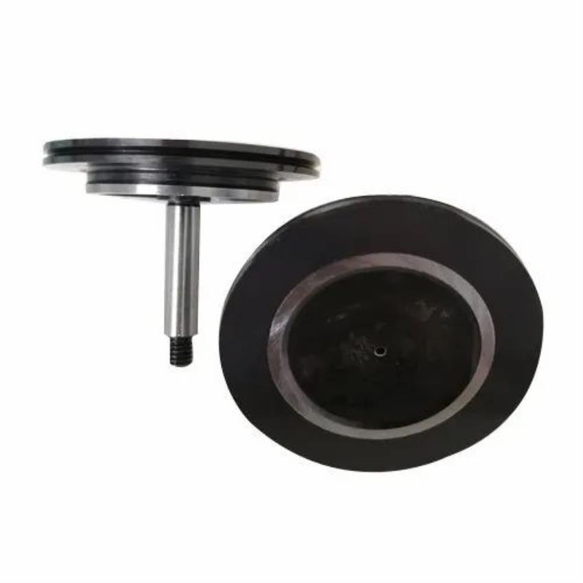 SS and rubber round pulley wheel for EDM machines. Features a single groove and 200mm diameter. Durable black construction for industrial applications.