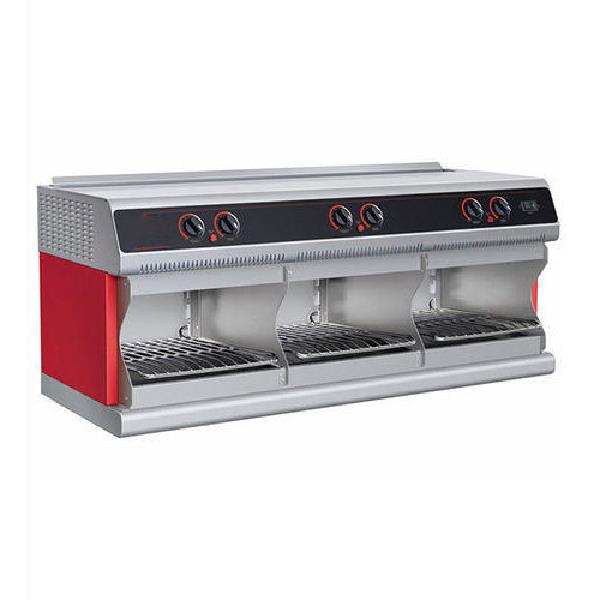 SS electric salamander grill with 4 kW power. Constructed from stainless steel for durable commercial kitchen use. Efficient and reliable performance.