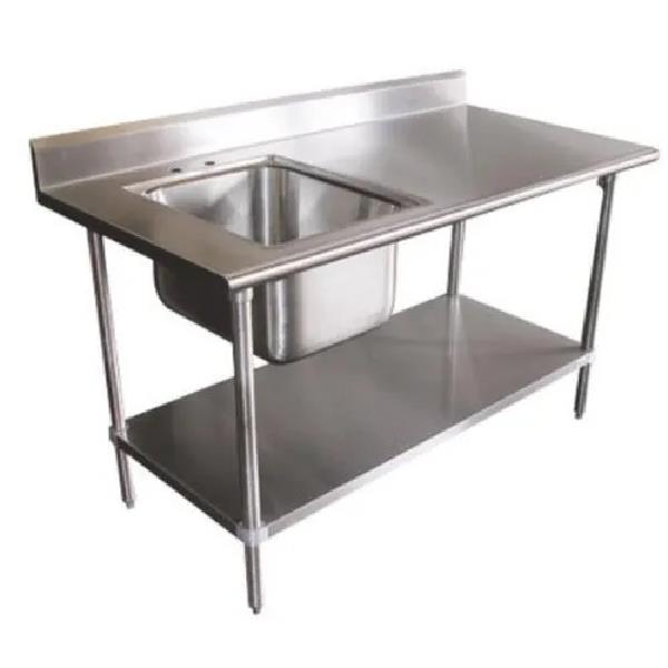 Glossy finish SS square sink table, 4 feet height, plain design. Made in India. Durable stainless steel construction for practical use.