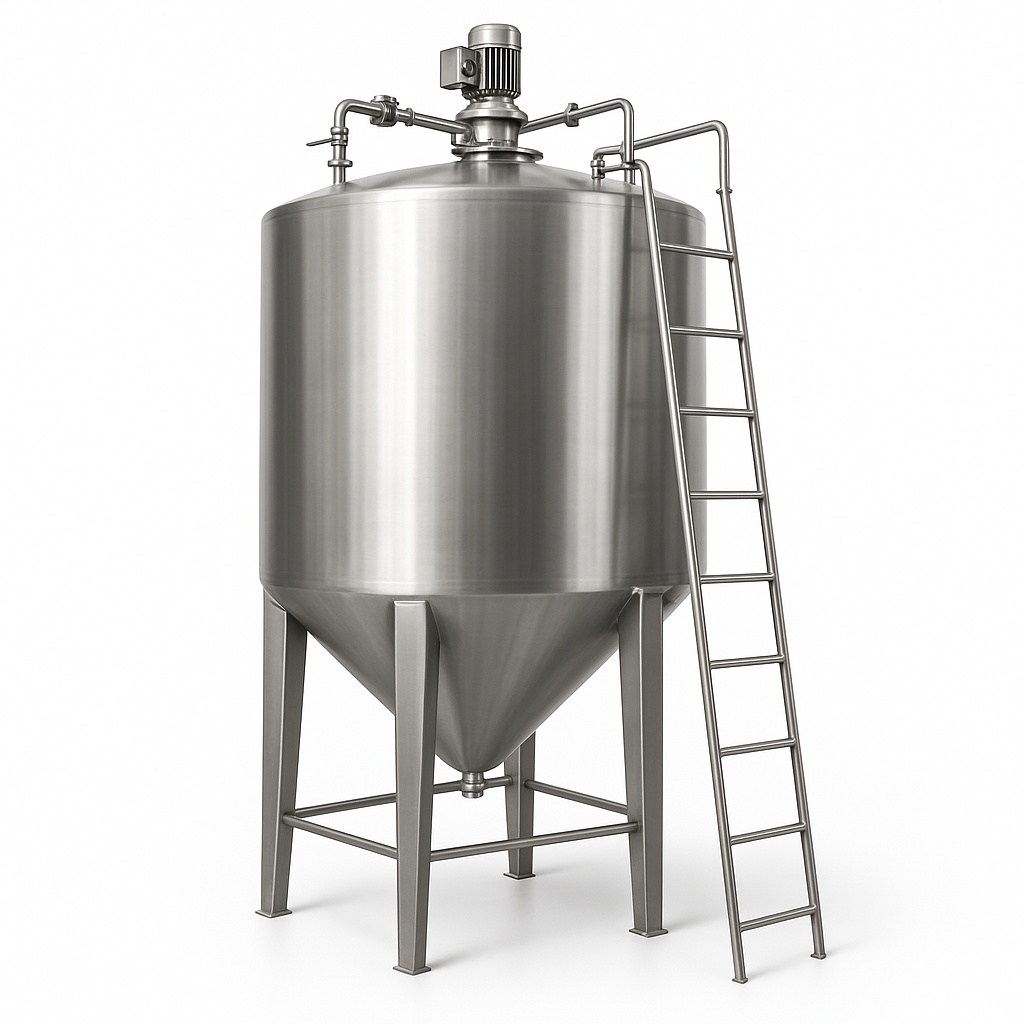 Stainless steel tank with agitator for food processing, pharmaceutical, and chemical industries. Capacity is customizable to requirement. Available in SS 304/316 steel grades.