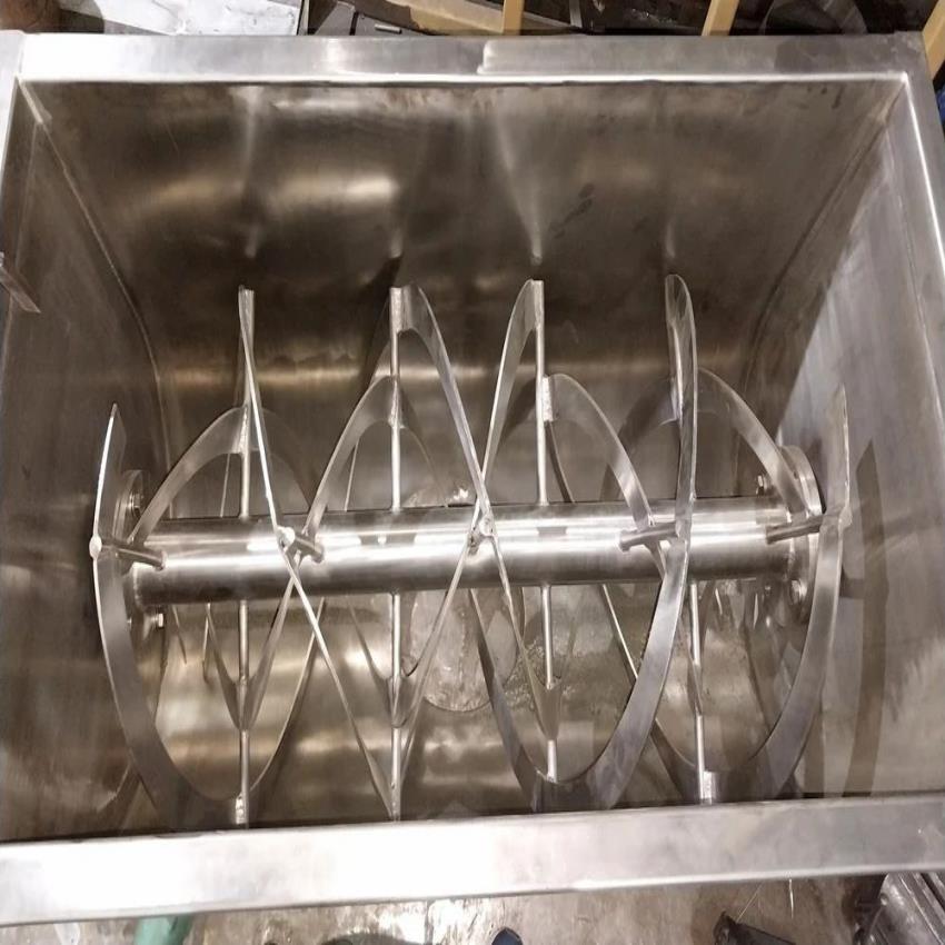 Semi-automatic stainless steel 304 mixing blender machine for Ayurvedic medicine. Capacity: 1000 kg/hr. Features butterfly valve discharge and a 2HP motor. Model SIRB100.