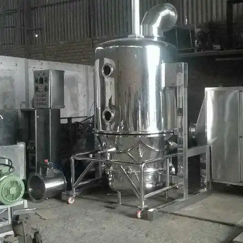 Automatic stainless steel fluid bed dryer machine, 8 to 420 kg batch size. Max temperature up to 600°C. For efficient industrial drying applications.