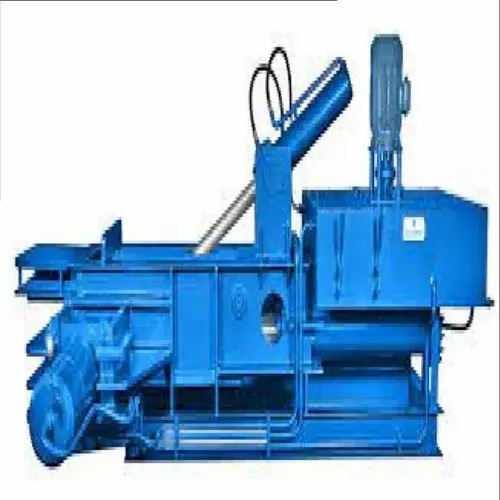 Automatic stainless steel hydraulic scrap baling press. 40 Ton maximum load capacity. Three-phase power supply. Made in India for industrial applications.