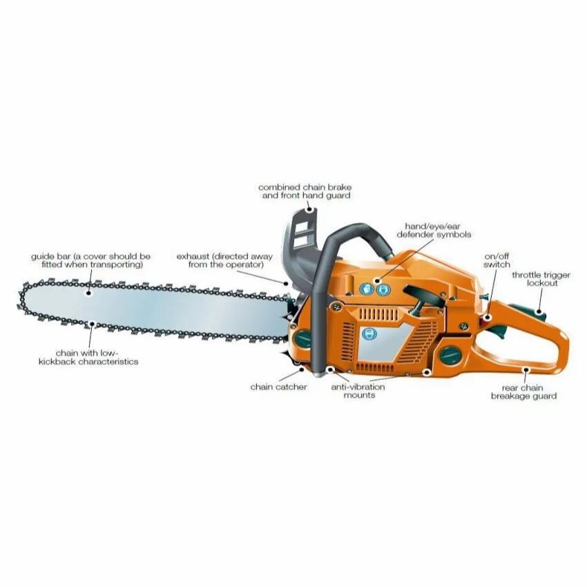 Durable stainless steel chainsaw bar designed for fieldwork. Features a 22-inch dimension for efficient cutting. Petrol-powered for robust performance in outdoor environments.