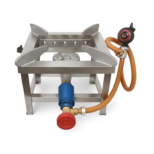 Polished stainless steel chapati bhatti with a single burner and single knob. Ideal for chapati preparation. Dimensions are 36x18x10 inches.