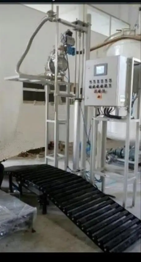 Stainless steel drum decanting machine for manufacturing plants. Electric powered, custom size/dimension available. Standard design, new condition, with a stainless steel basket.