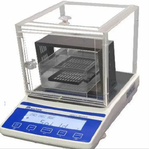 Automatic stainless steel electric gold purity tester with a proportional counter tube for detection. Operates on 230W power, designed for new gold testing. Made in India.