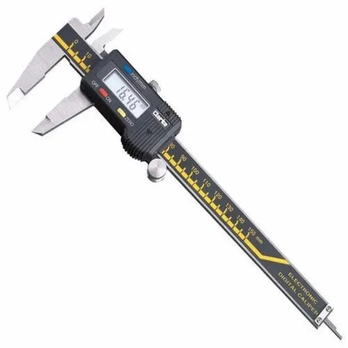 Stainless steel electronic digital caliper with a 0-150mm measuring range. Features digital display and +/-0.01MM accuracy, powered by one 1.5V battery.