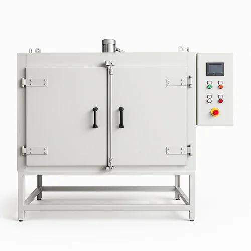 Stainless steel or mild steel epoxy curing machine with forced air circulation. Features digital PID control and Thyristor power regulation for efficiency. Designed up to 225°C.