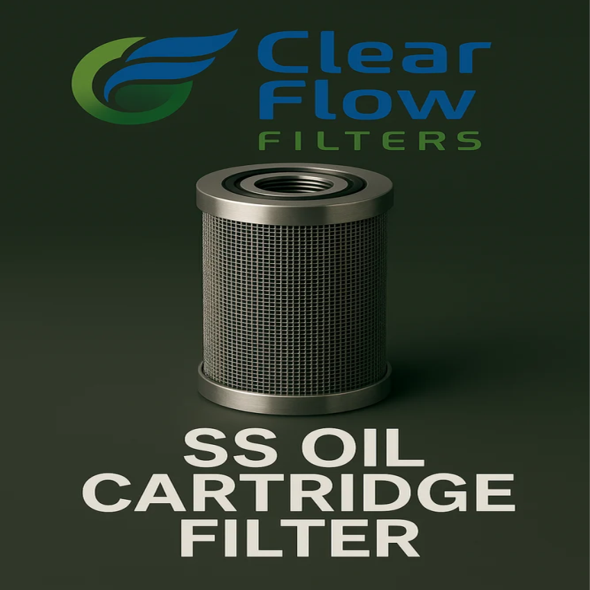 Stainless steel oil cartridge filter for water filtration. Available in 10", 20", 30", 40" lengths. Features electro-polished surface finish, up to 150°C design temperature.