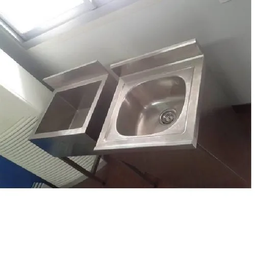 Single sink, SS304 grade stainless steel scrub basin for hospital use. Features a polished surface and dimensions of 18 x 24 x 10 inches. Made in India.