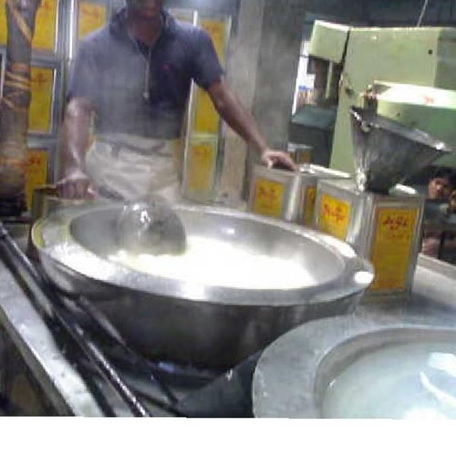 S.S. 304 construction, standard design. This steam-heated packing table is 8' L x 4' W x 3' H, ideal for efficient sweets packaging operations. Steel color.