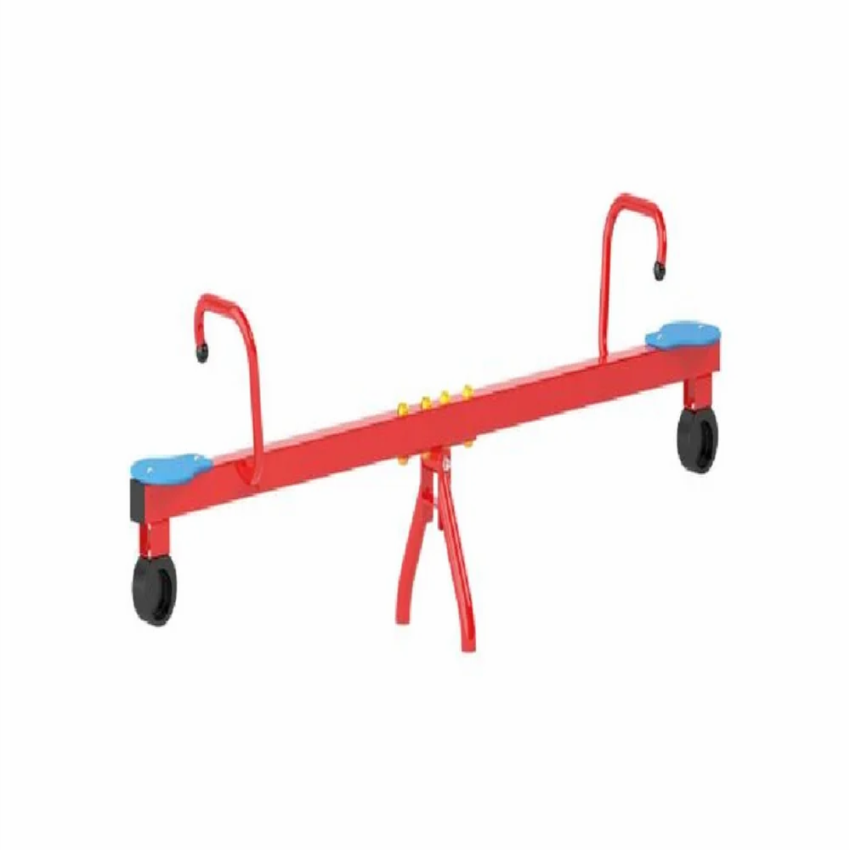 Robust 2 seater steel see saw for outdoor playgrounds. Features a color-coated surface finish. Designed for safe play with a 20kg capacity. Made in India.