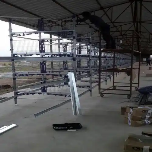 This steel automatic layer machine is designed for poultry applications, accommodating 25,000 birds. Features panel build construction. Ideal for efficient, automated poultry management.