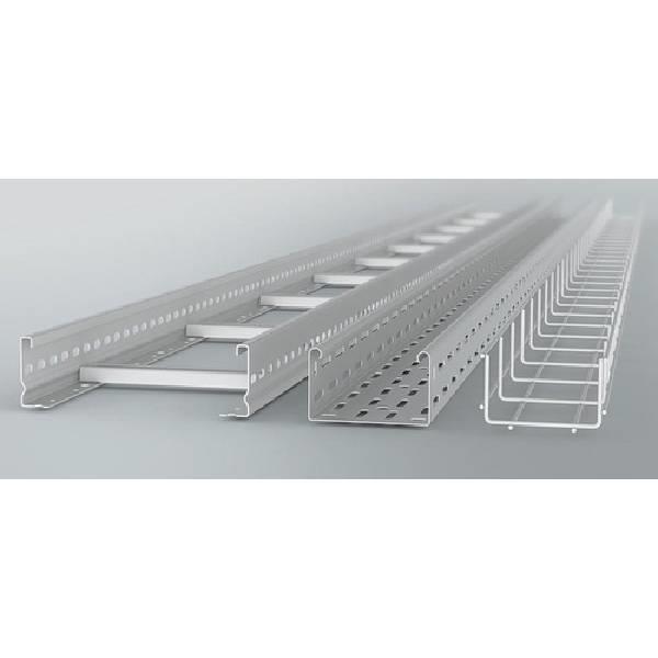 Ladder or perforated stainless steel cable trays. Available with hot-dip galvanized, powder coated, or pre-galvanized metal finishes. Material thickness ranges from 1.6 mm to 2.5 mm.